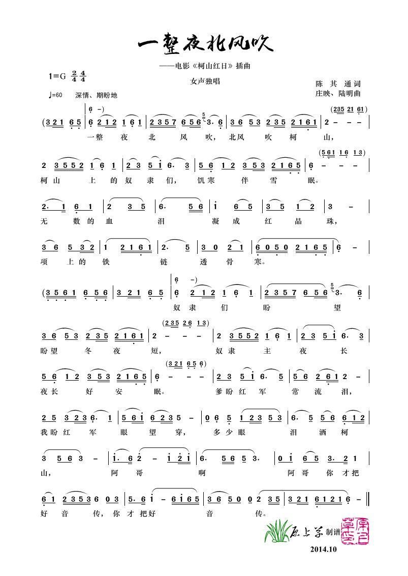 一整夜北风吹 柯山红日 选曲