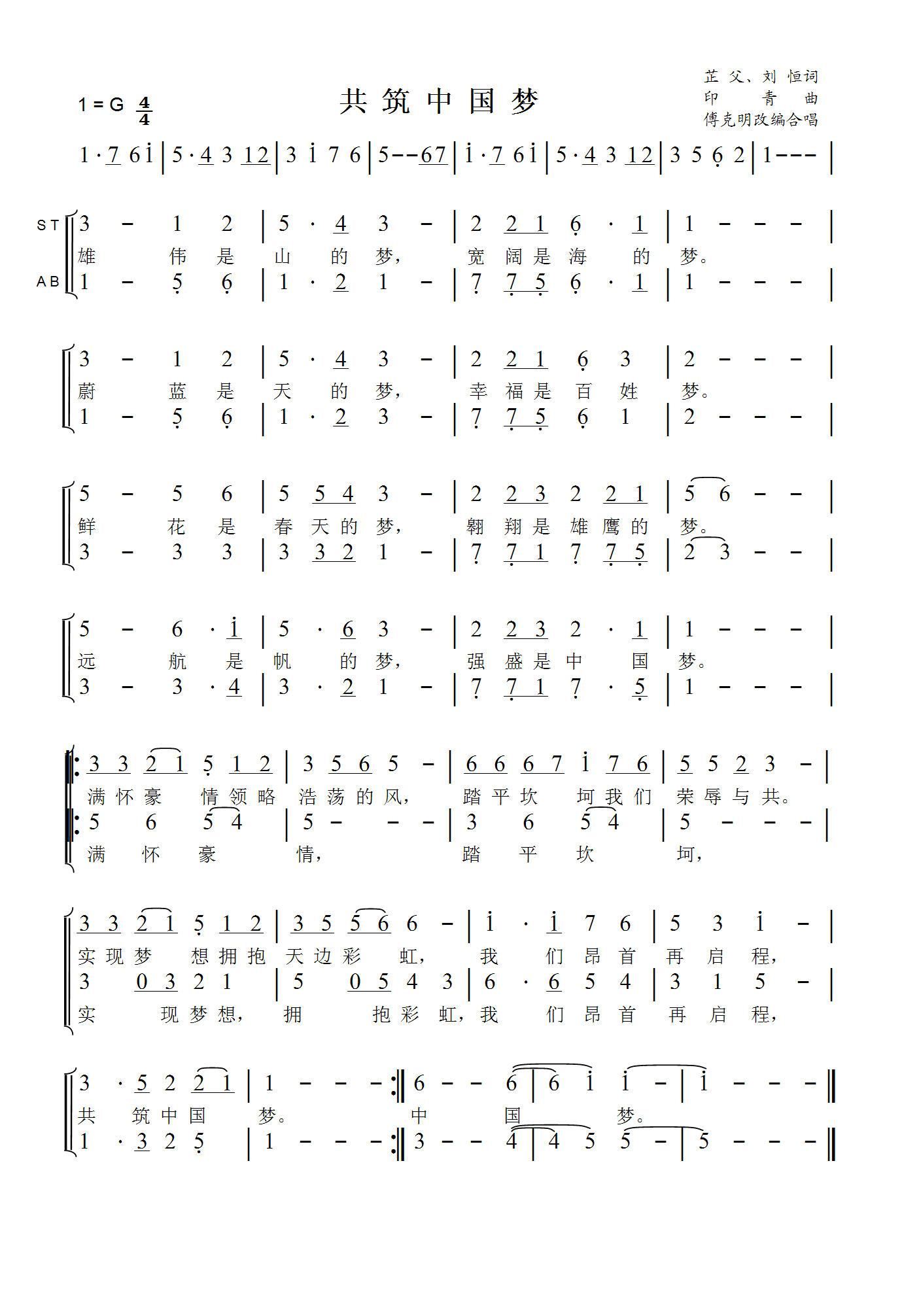 > 共筑中国梦 傅克明改编合唱