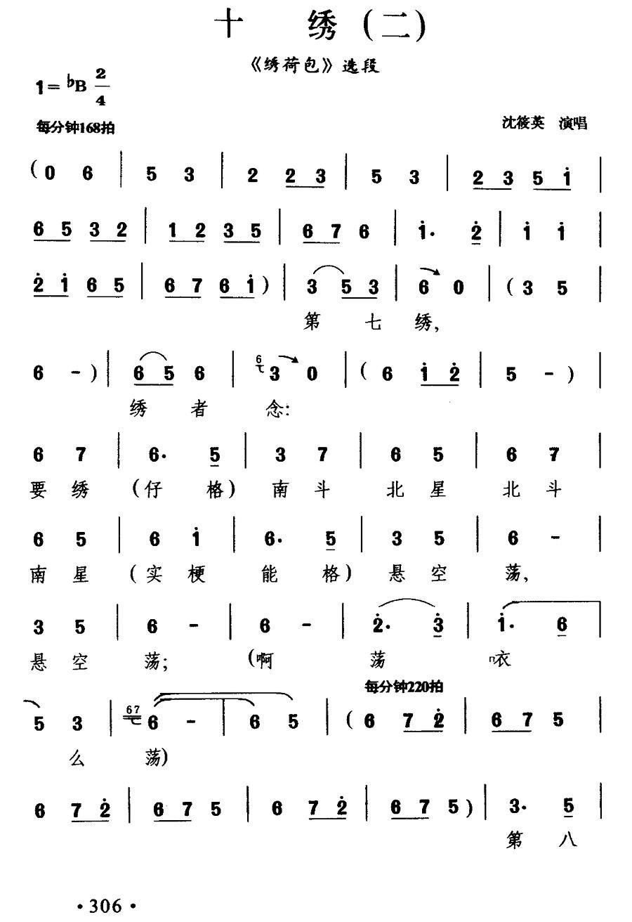 - [二胡谱,歌谱] 绣荷包 二重奏