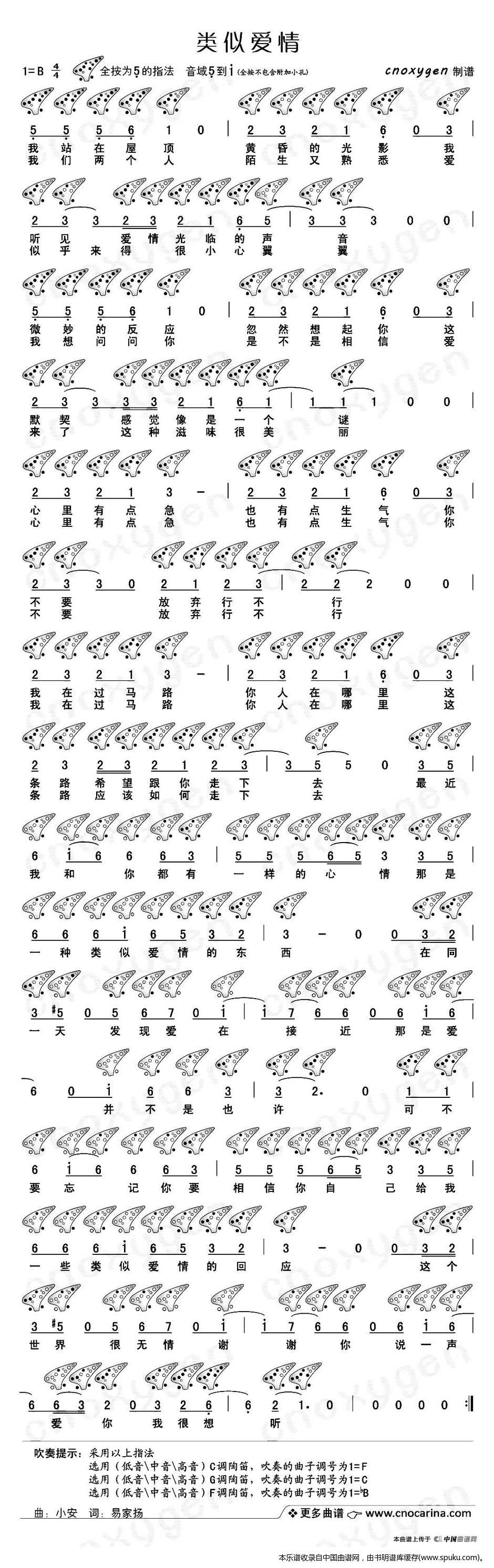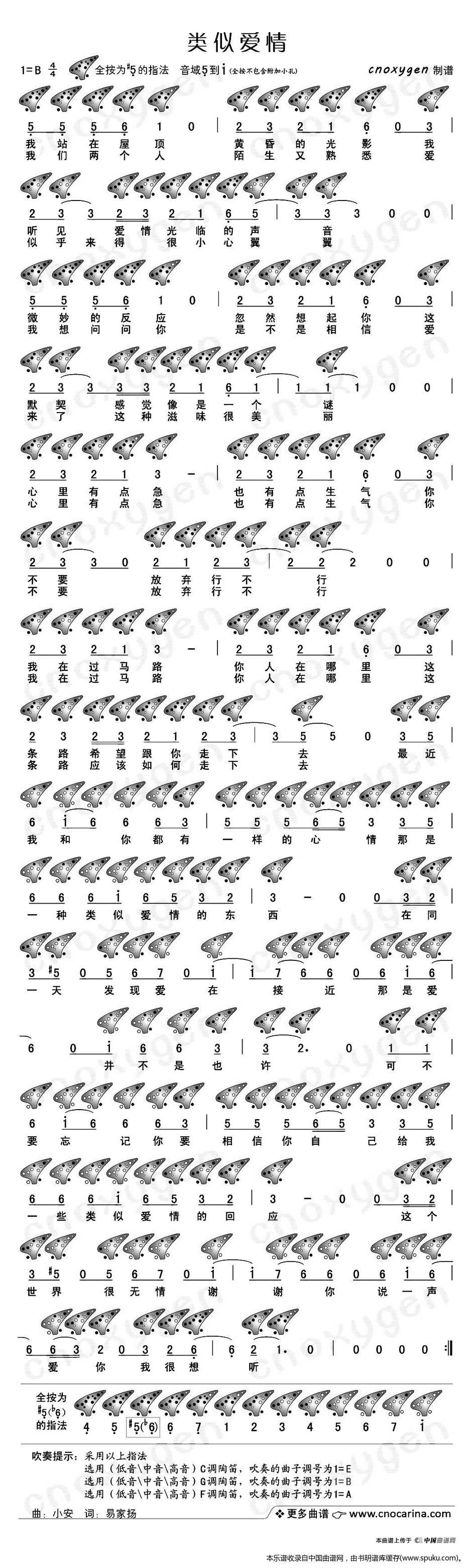 - [笛子谱,陶笛谱] 类似爱情 六孔