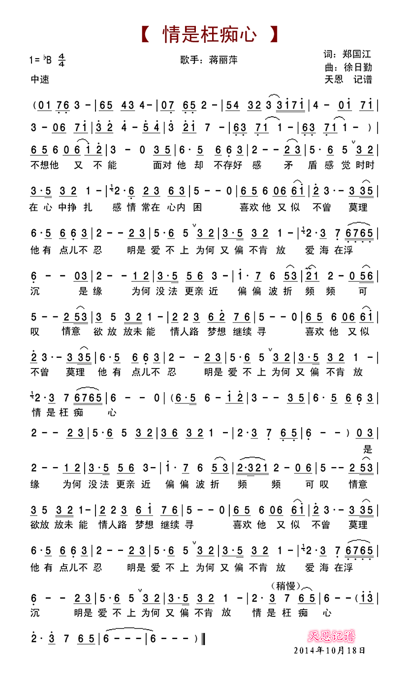 - [歌谱] 痴心绝对