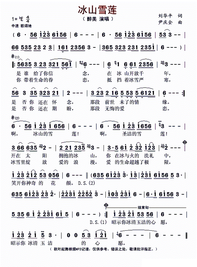 - [歌谱] 冰山雪莲
