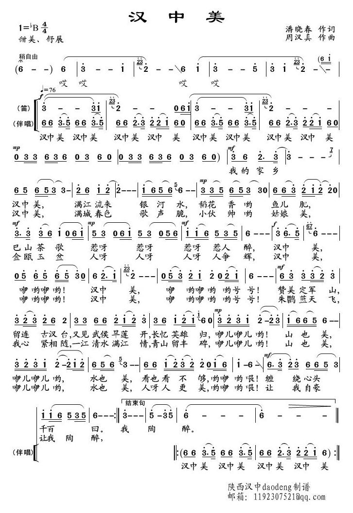 - [歌谱] 美丽的汉中