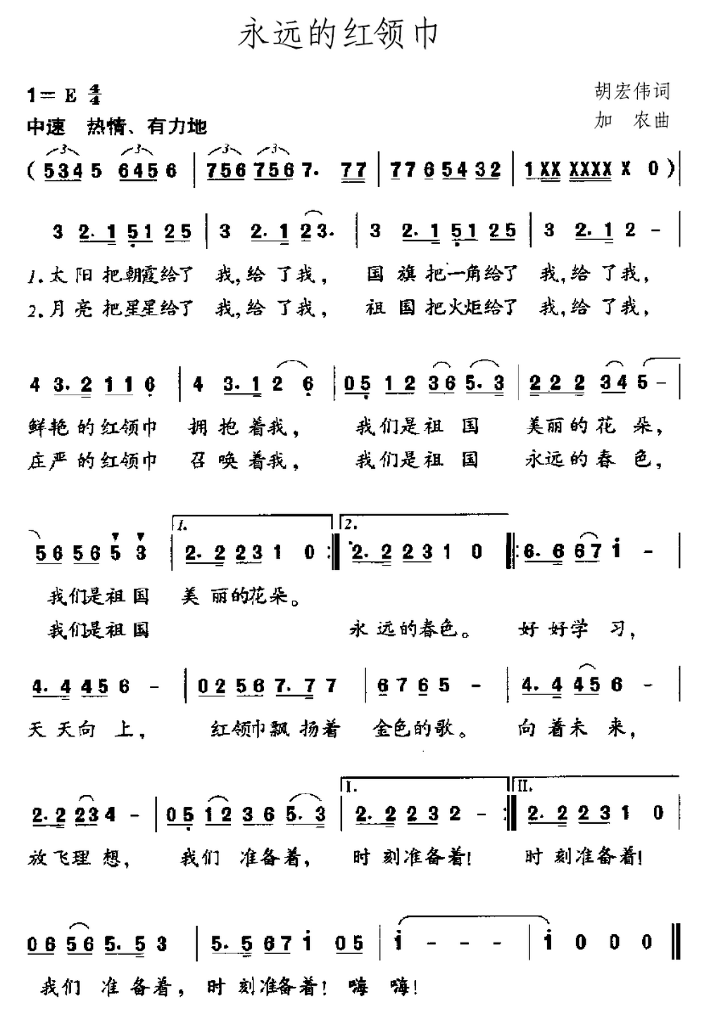 - [歌谱] 永远的红领巾