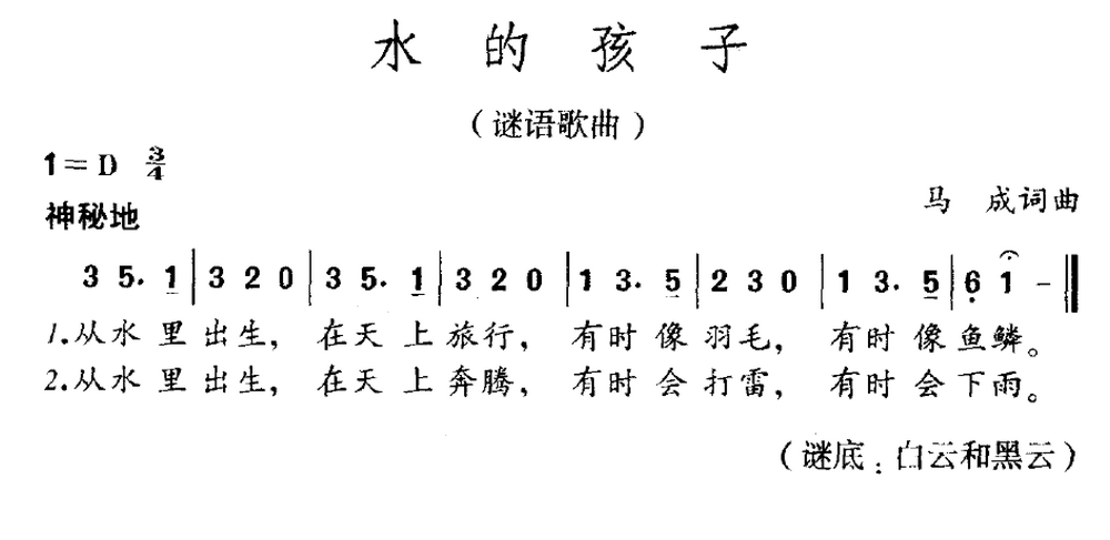 > 水的孩子 谜语歌曲