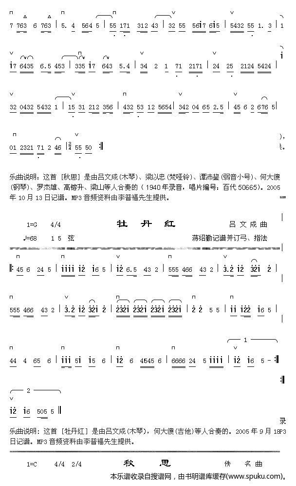 - [歌谱] 秋思 牡丹红