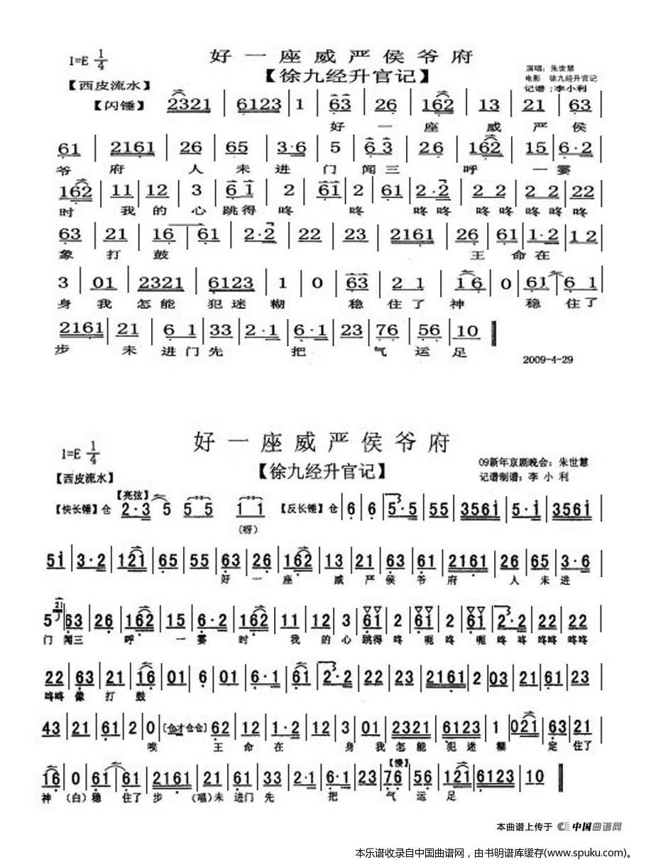 > 好一座威严侯爷府 徐九经升官记 两段落流水 朱世慧唱段 京剧戏谱