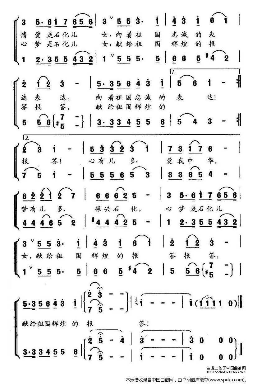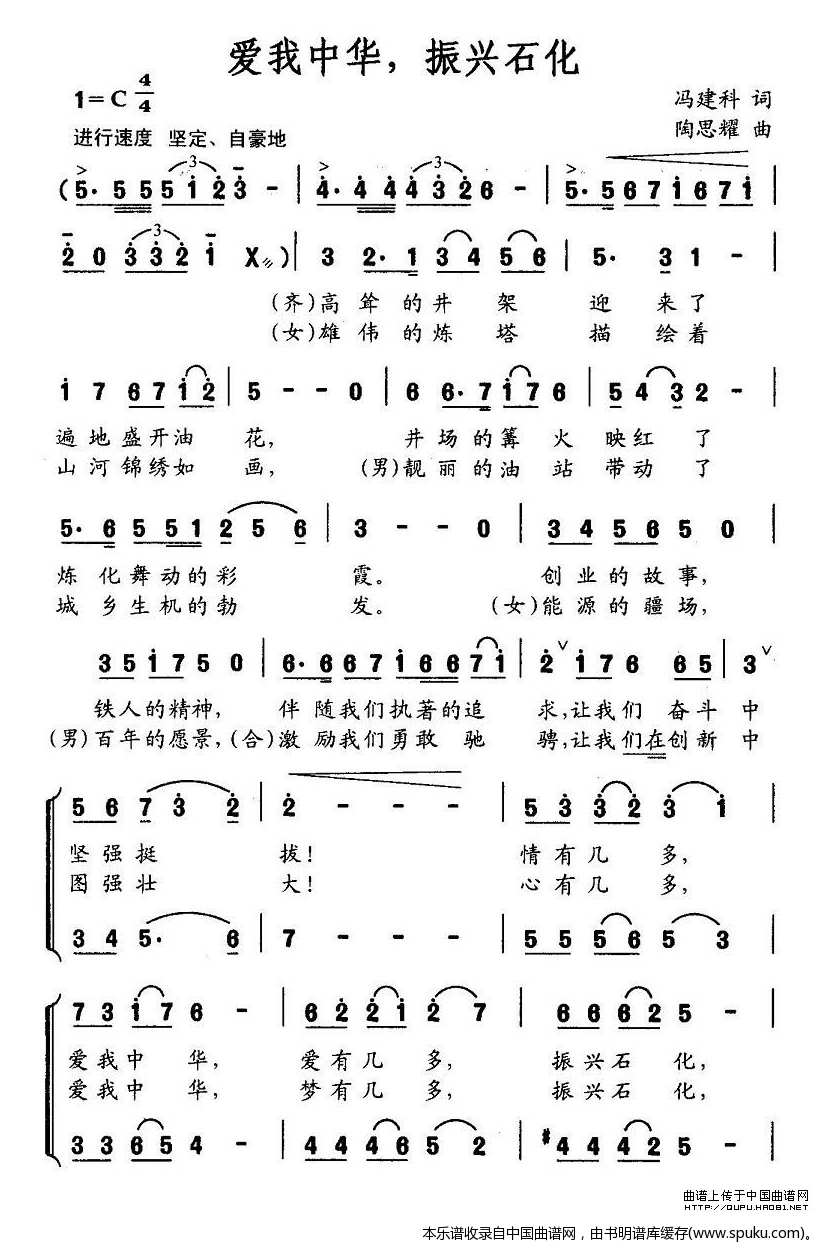 > 爱我中华 振兴石化 合唱谱
