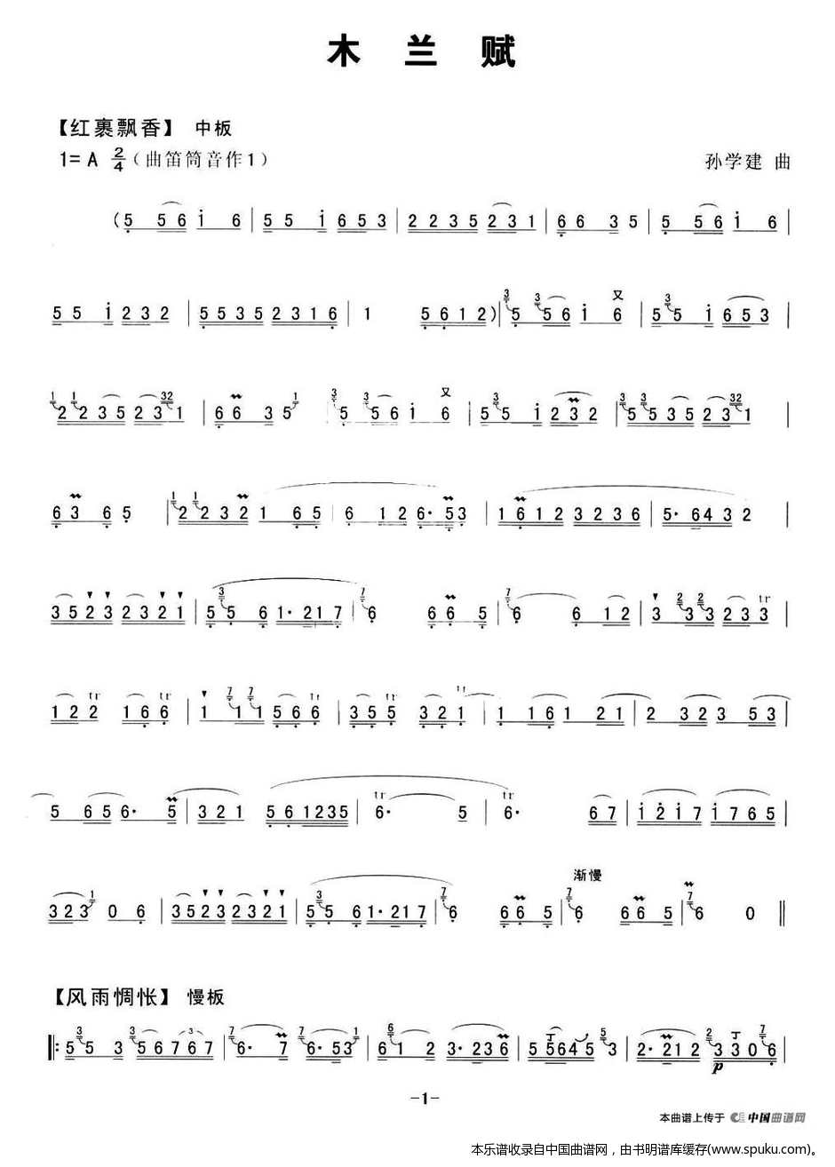 - [笛子谱,歌谱,箫谱] 木兰辞