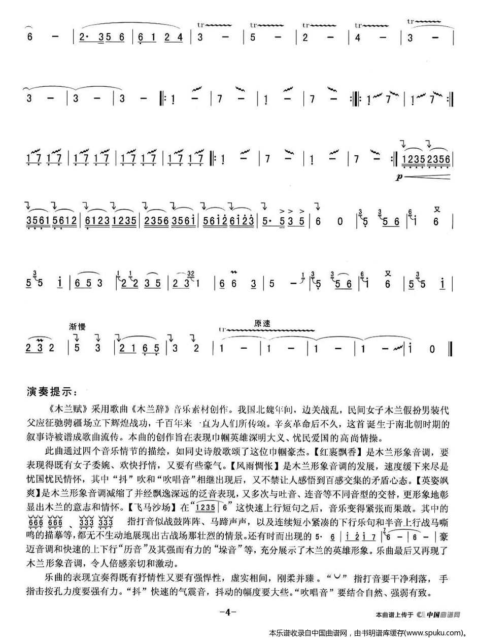 - [笛子谱] 木兰辞
