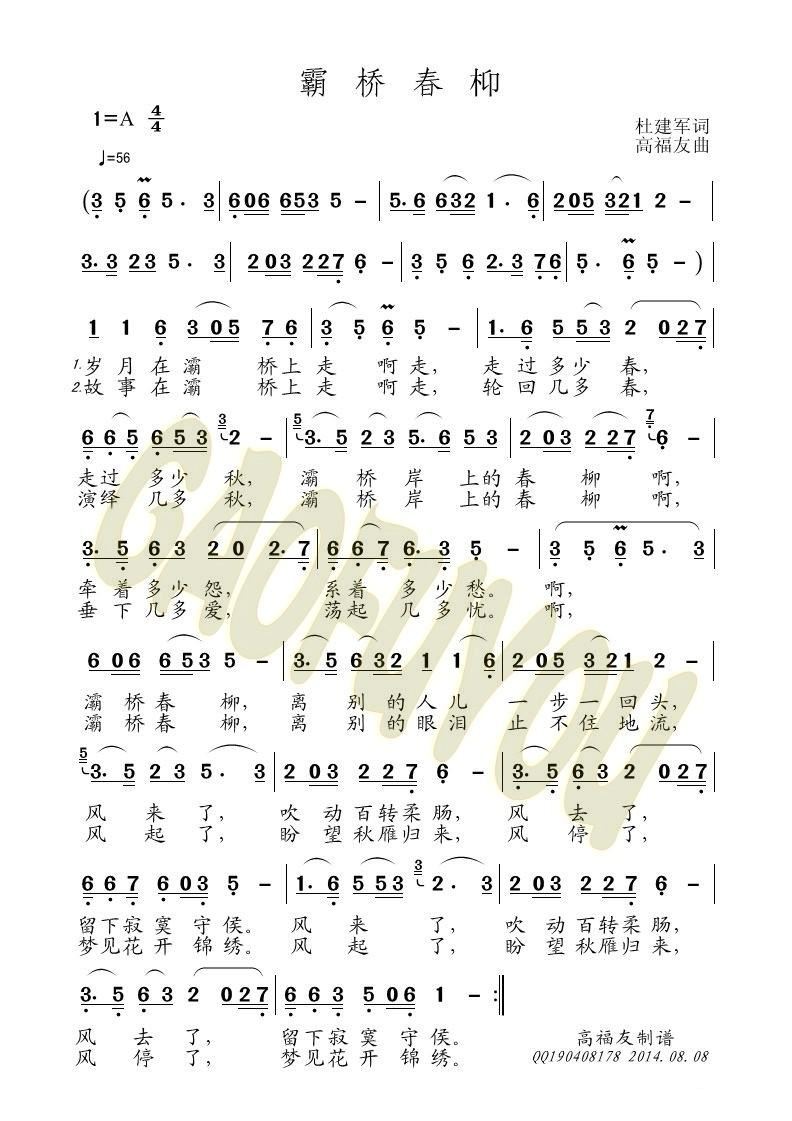- [歌谱] 霸桥春柳