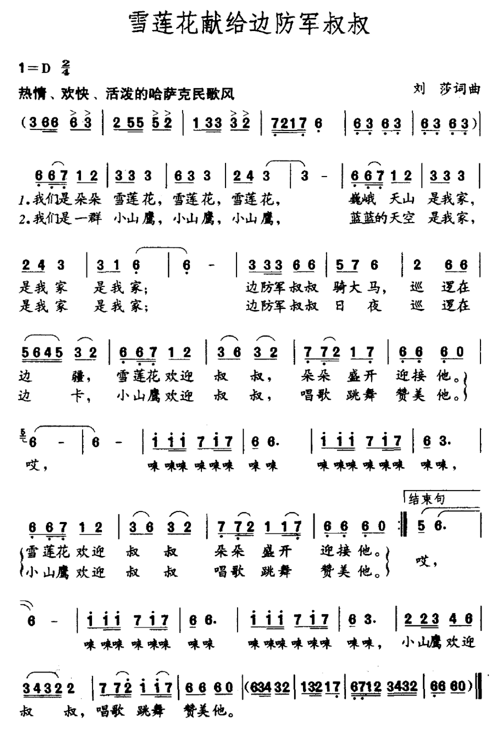 - [歌谱] 边防军叔叔 请喝一碗茶