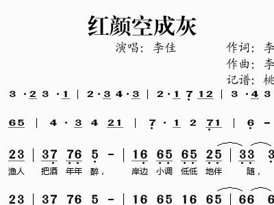 - [歌谱] 红颜空成灰 李佳